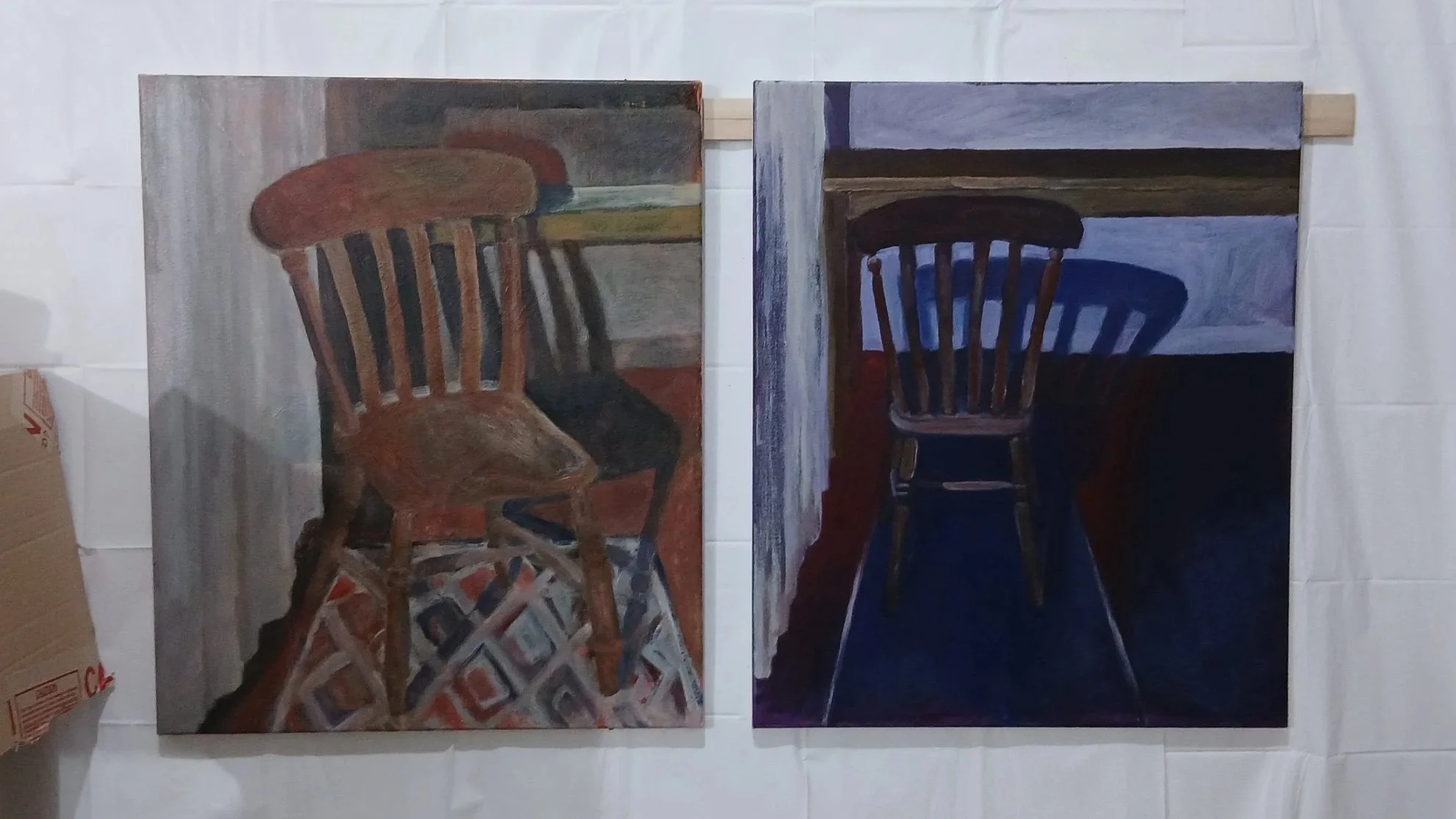 Studio Studies of an old farmhouse chair - Oil on Canvas and Acrylic on Canvas from left to right NFS